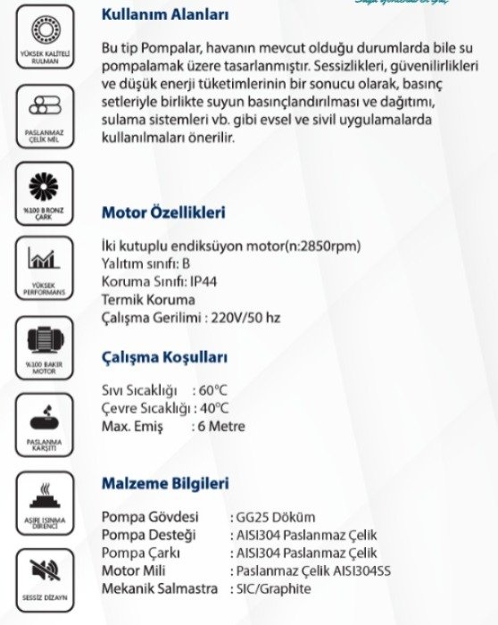 KAYSU HMC145-6SH YATIK MİLLİ PASLAMAZ ÇARKLI POMPA